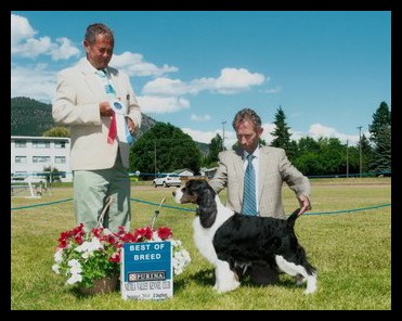 Springer Spaniel. She has a impressive pedigree filled with the breeds top show dogs. In the show